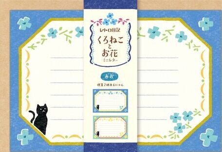 レトロな枠にくろねこがちょこんと可愛らしいミニレターセット。
