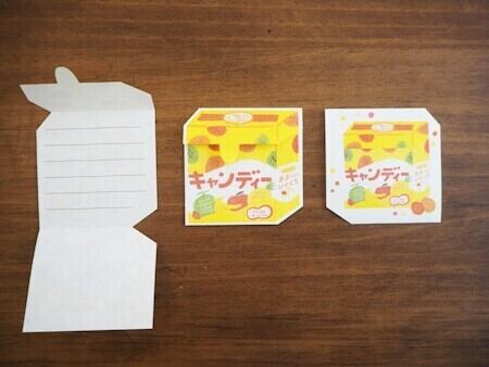 昔懐かしい駄菓子たちがモチーフのミニレター。