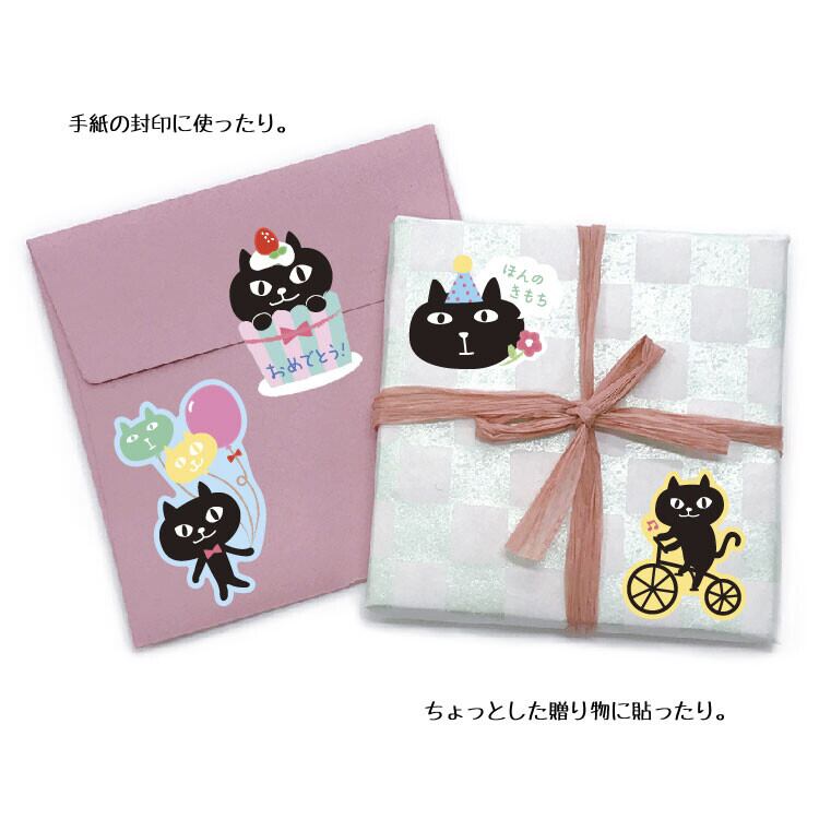 ネコマンジュウの色々な姿や表情が楽しい、大きめのフレークシールです。